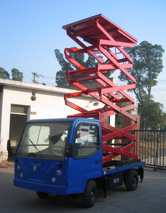 The battery-mounted aerial work platform is a special equipment for aerial work that is modified from the lifting platform and the battery car. By using the original DC power of the battery car, the lifting and lowering of the lifting platform and the movement and lifting of the whole machine can be realized without external power supply. The device is easy to move and has a wide range of operation. It is suitable for high-altitude operations with a wide range of operations and high mobility. The battery-mounted aerial work platform is a special equipment for aerial work that is modified from the lifting platform and the battery car. Using the original DC power of the battery car, The lifting and lowering of the lifting platform and the movement and lifting of the whole machine can be realized without an external power supply. The device is easy to move, has a wide range of operations, and is suitable for a wide range of operations. All lines of high mobility work at heights. Standard configuration ■ Power failure emergency drop valve device ■ Screw support leveling device ■ Hydraulic line rupture safety protection device ■ Emergency stop button ■ Overload safety protection device Optional ■ Power optional: AC380V/220V, manual hydraulic power ■ Outreaching work platform ■ Fully automatic hydraulic leveling device |